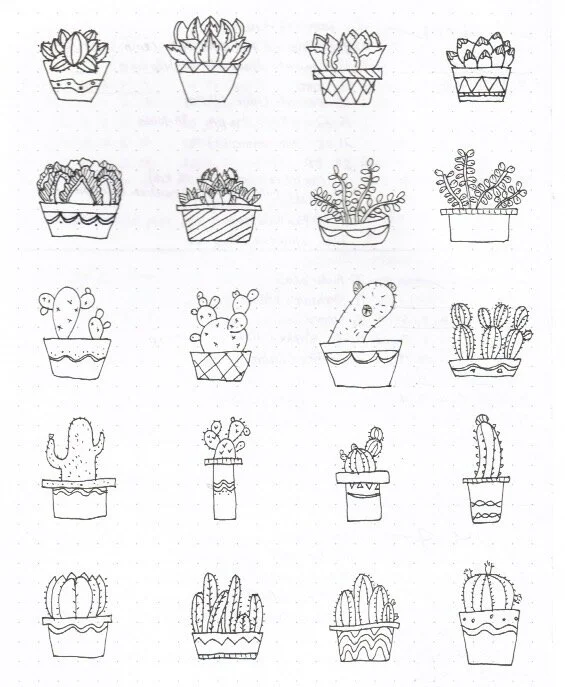 Selected doodles from bullet journals and drawing journals over the years. Done using fineliners on leuchtturm and baron fig journals.